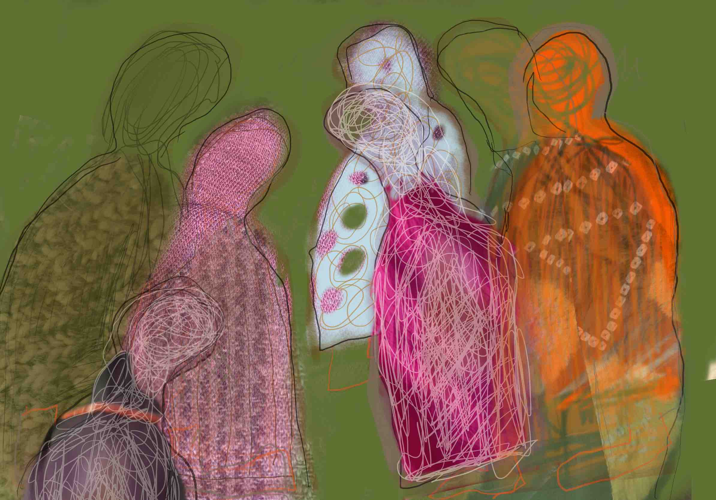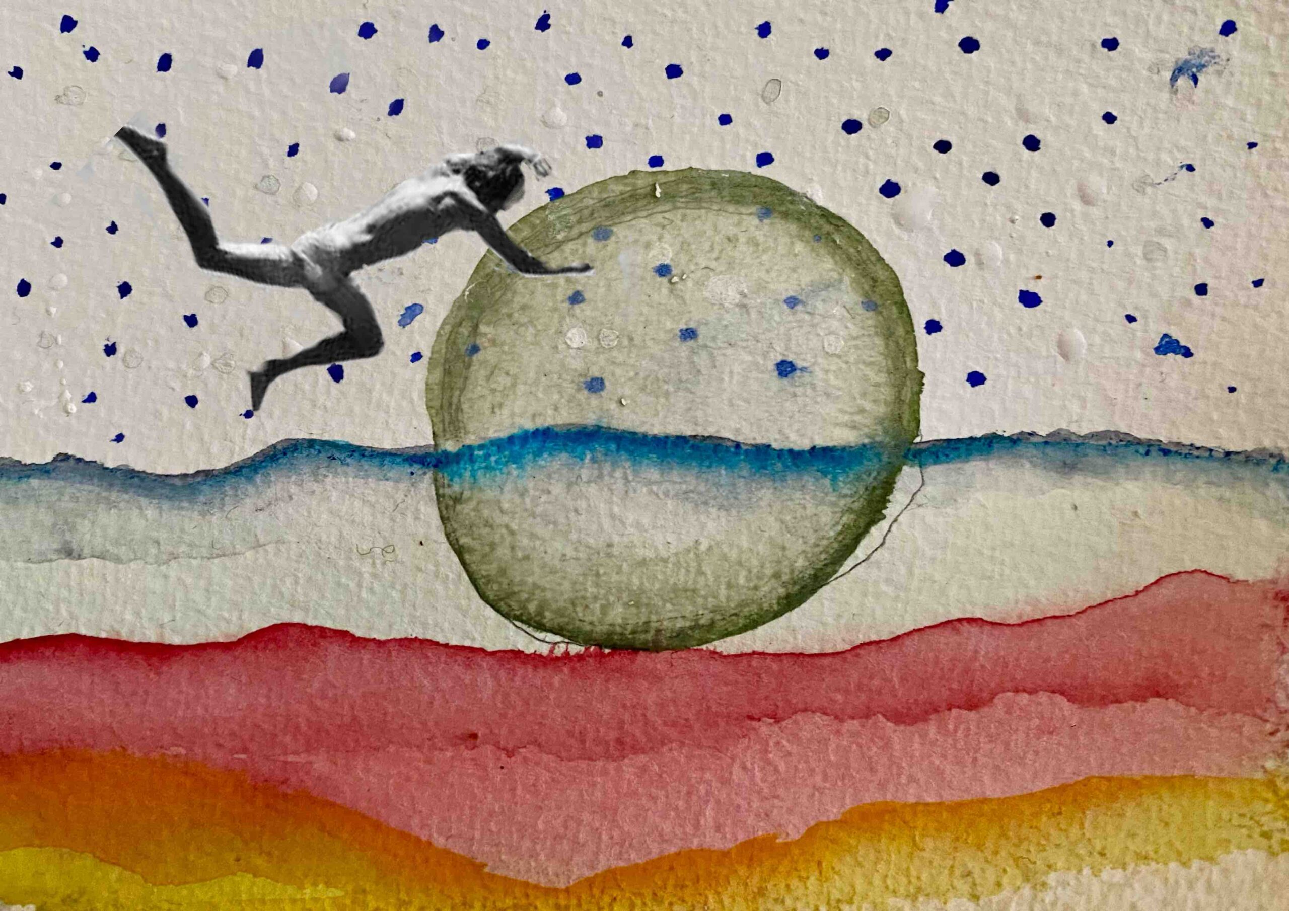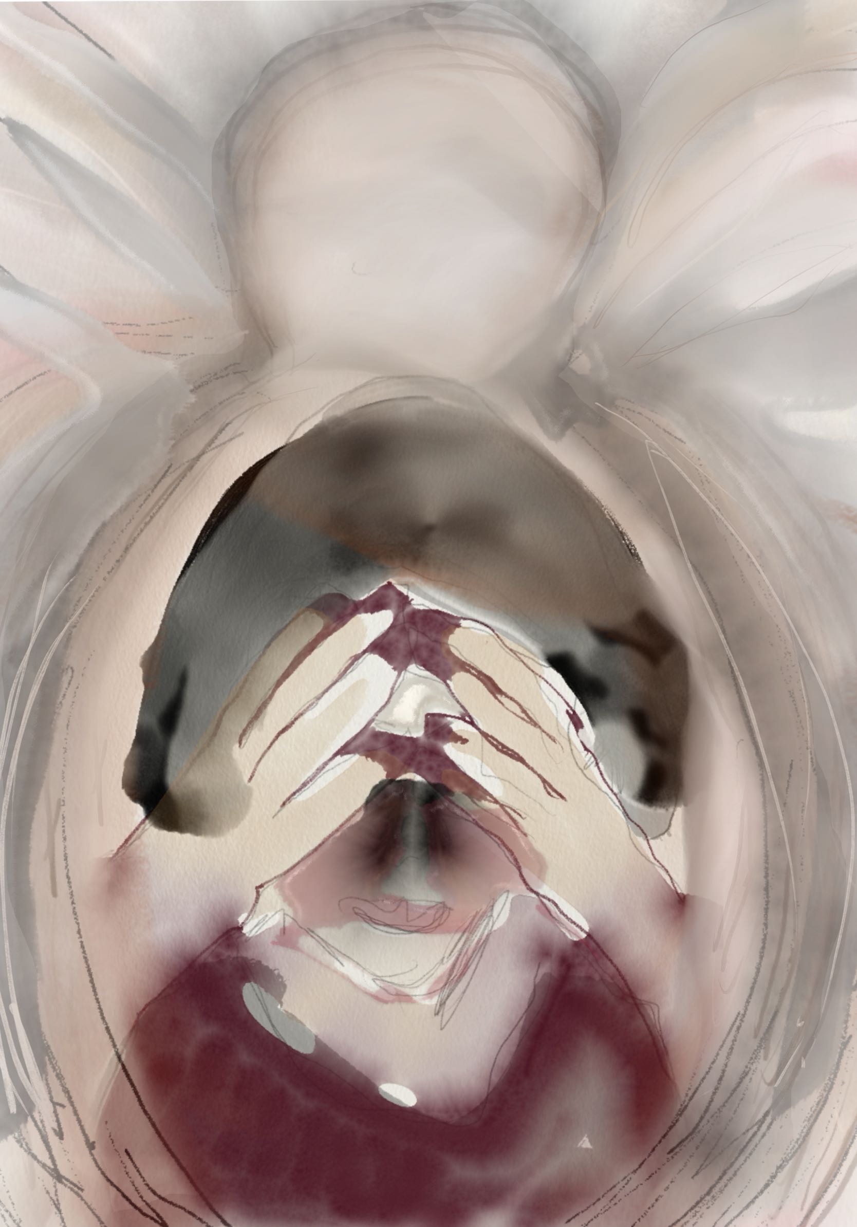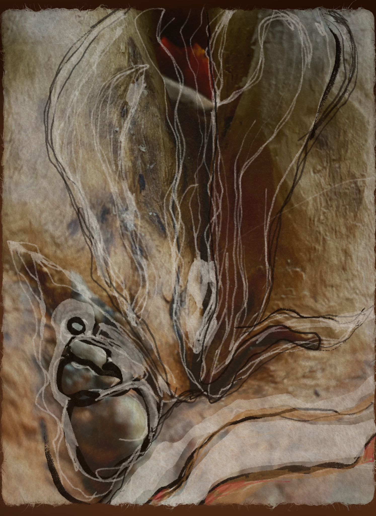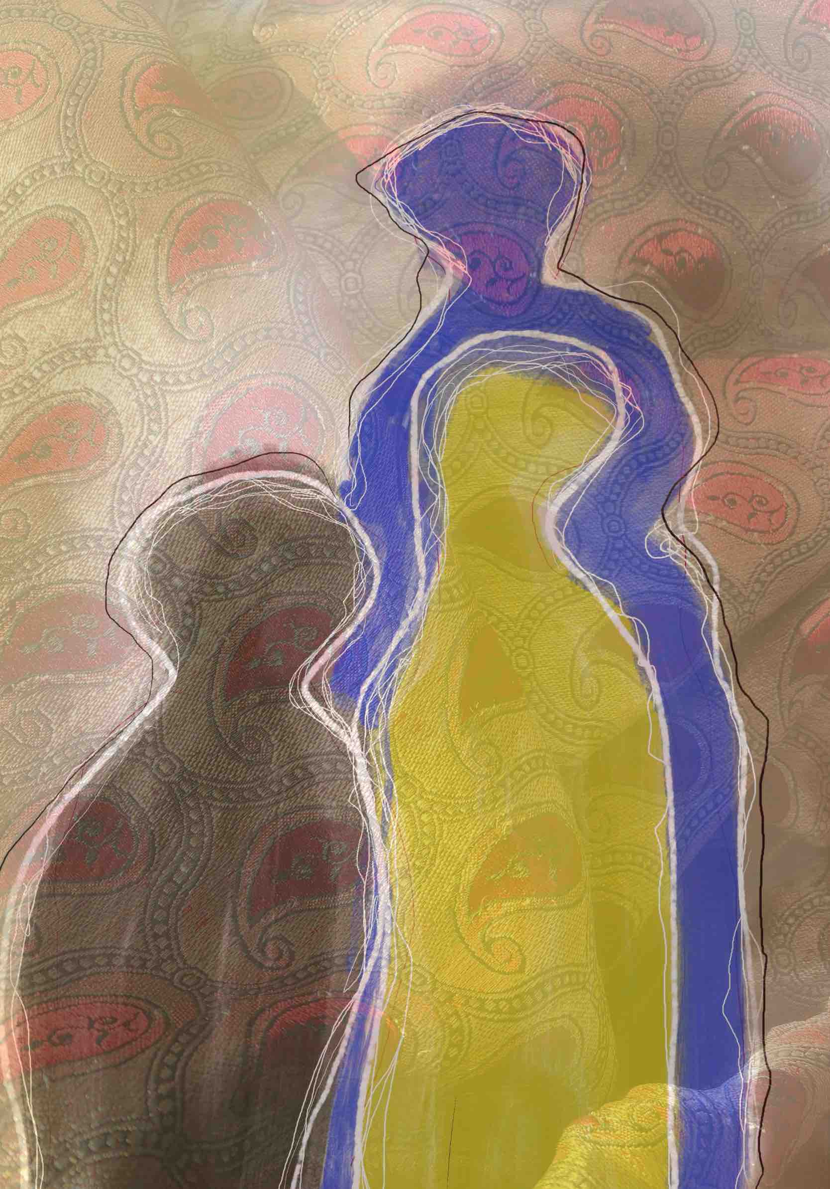 Vaak zijn het prints, van werk dat ik getekend heb op papier of werk dat ik digitaal heb gemaakt en erna bewerkt op papier.
